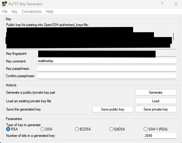 - Puttygen으로 .ppk를 Load하고, Public key for pasting into OpenSSH authorized_keys file 내용을 복사합니다.